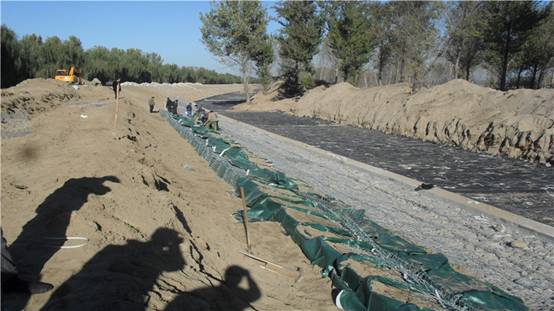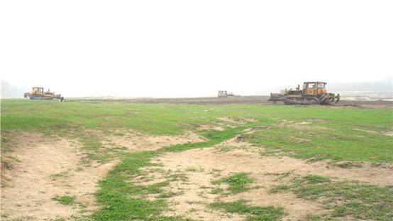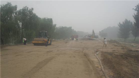 左堤加高:樁號(hào)ZD6+918~ZD9+235,填筑質(zhì)量標(biāo)準(zhǔn):粘性土壓實(shí)度≥92%,無(wú)粘性土相對(duì)密度≥0.65。填筑完成后進(jìn)行麻網(wǎng)椰纖植生毯鋪設(shè)。