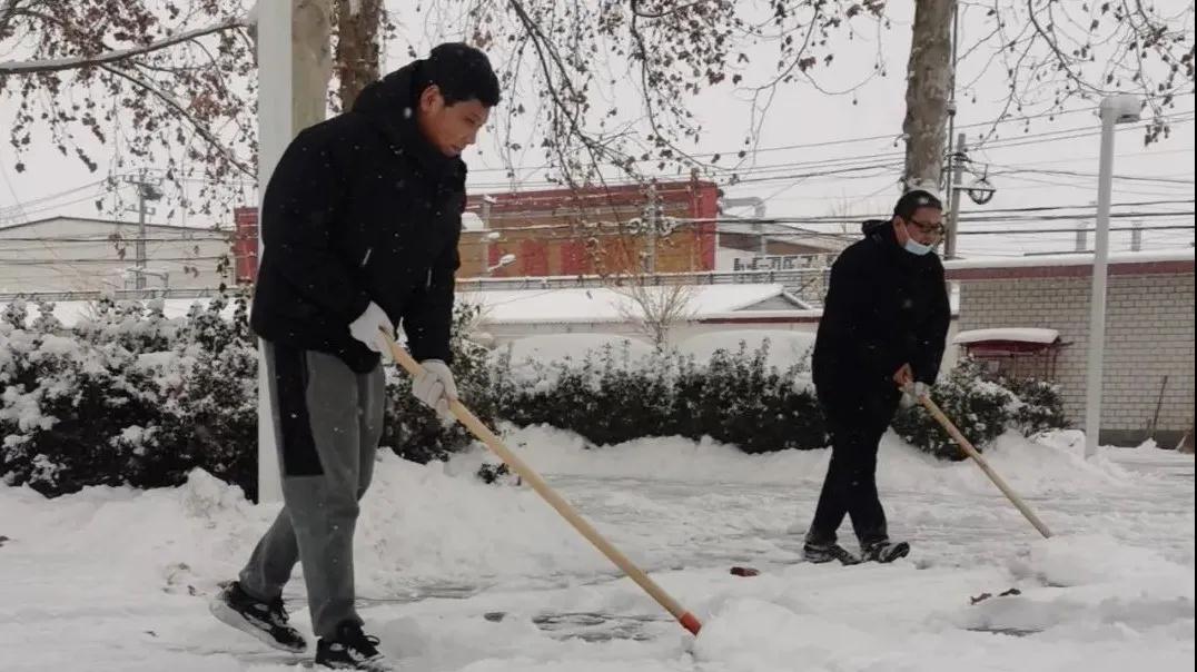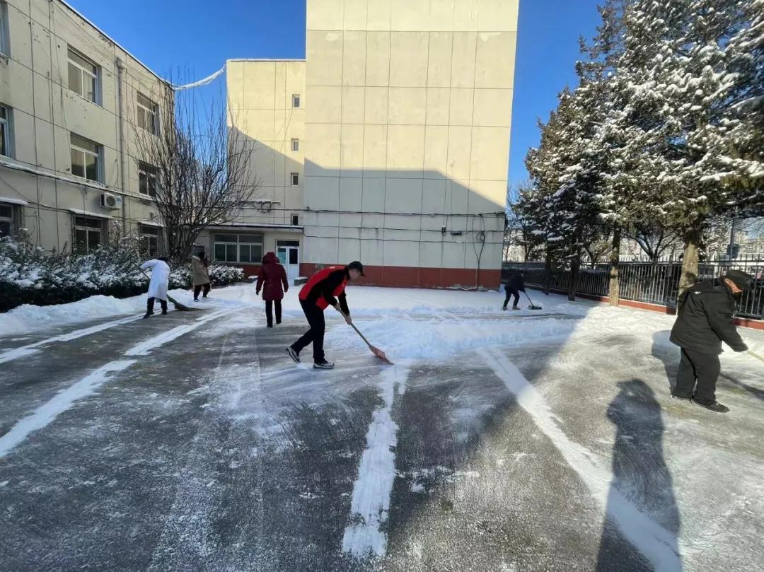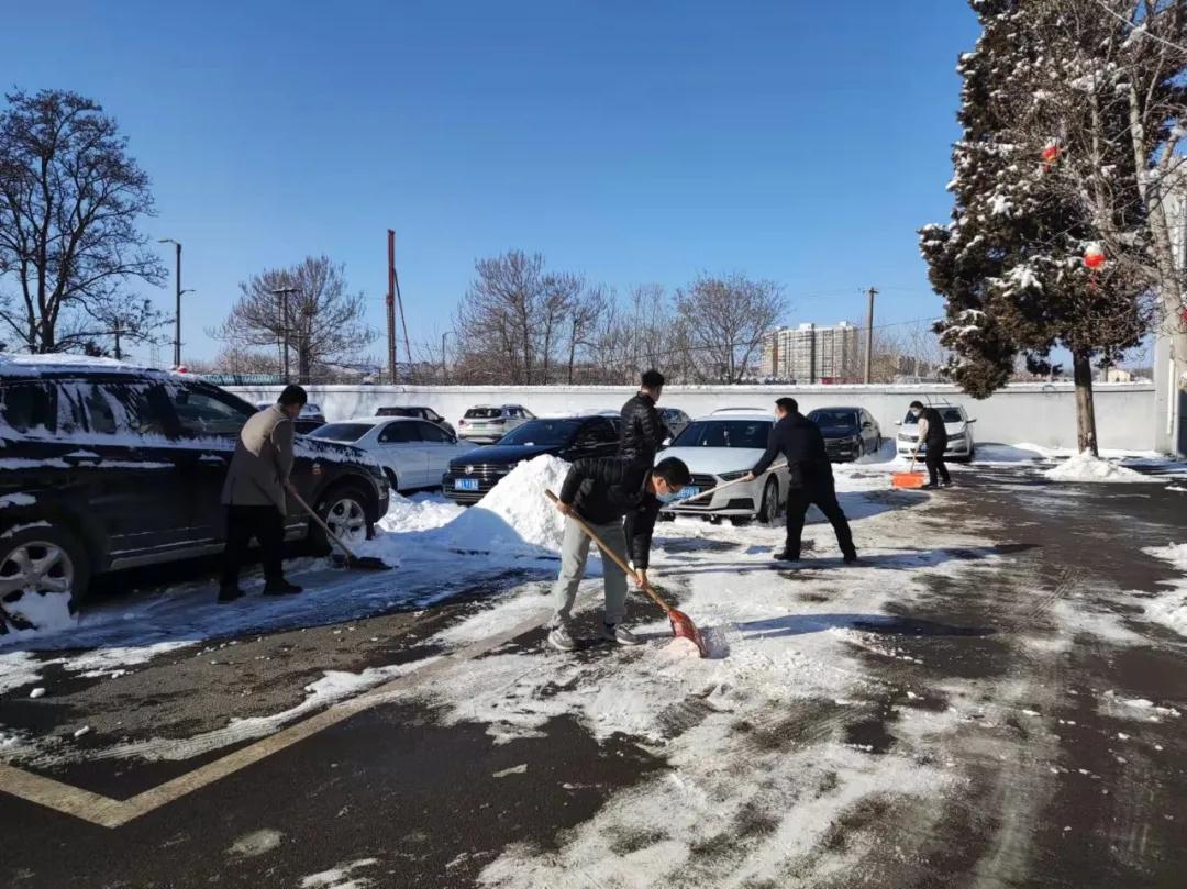 掃雪現(xiàn)場,黨員干部帶頭沖在最前面,不畏嚴(yán)寒,大家齊心協(xié)力,配合默契。經(jīng)過大家的共同努力,辦公場所及周邊道路的積雪得到了清除,職工道路交通出行安全得到了保障。